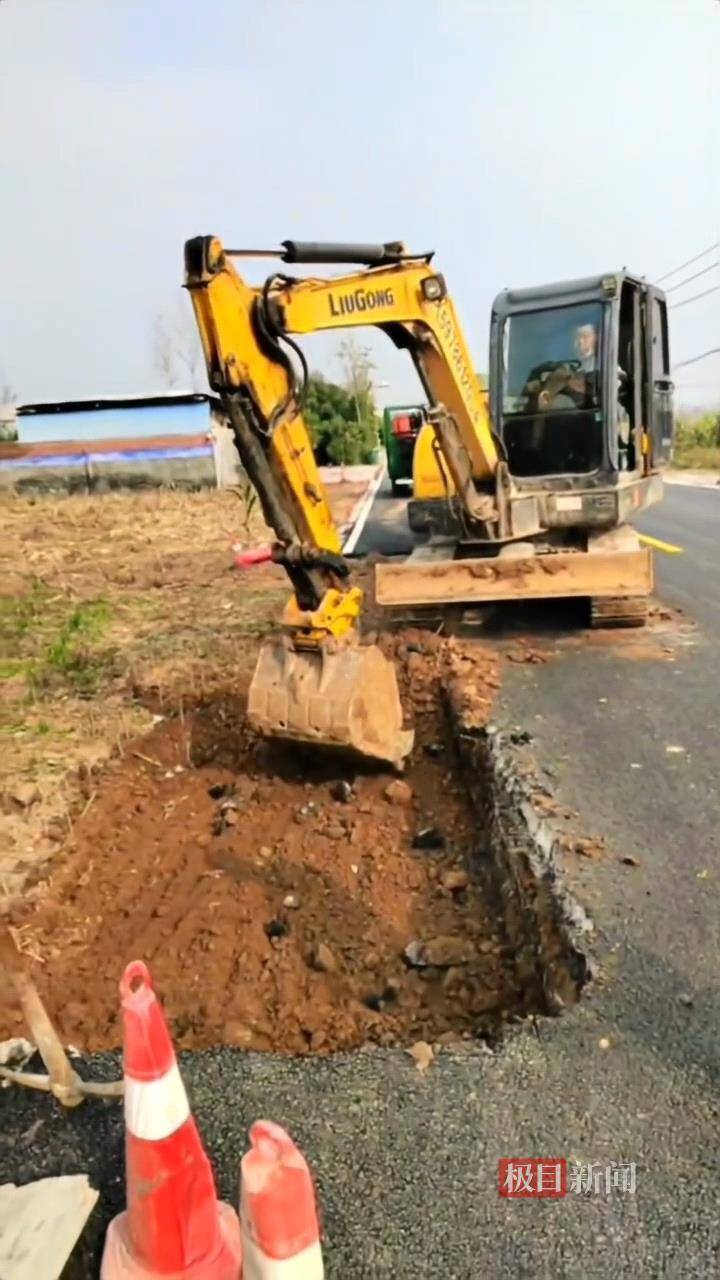 一名当地网友介绍,11月3日,他途经此处发现了这个马路缺口,拍了一段视频发到网上。11月5日,他再次经过这里时,发现已有施工人员和挖掘机在修补缺口,他对当地的办事效率点赞,又发了一段修补的视频。11月6日,另一名当地网友也记录下了这一过程。